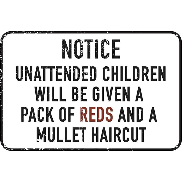 Unattended Children Will Be Given A Pack Of Reds And A Mullet Haircut 12 X 8 Tin Sign Walmart Com